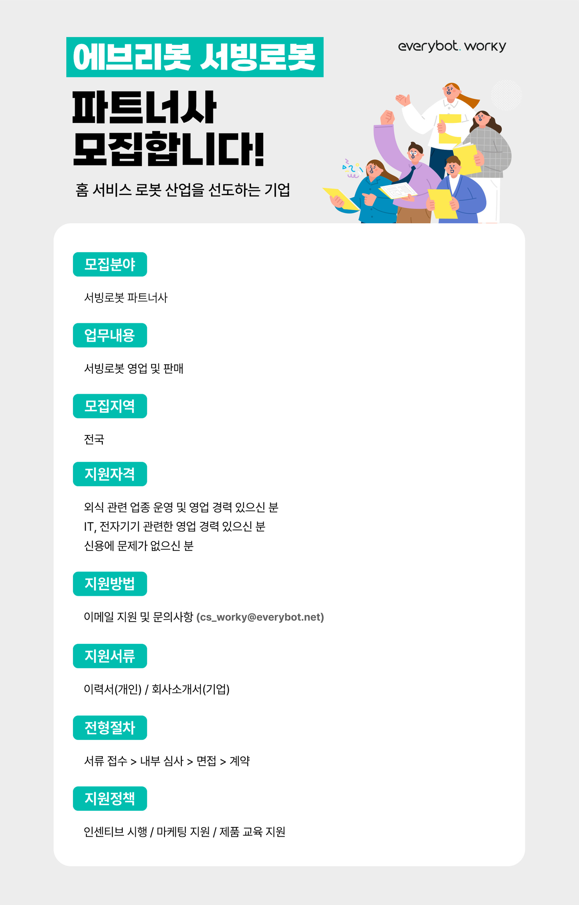 에브리봇과 함께 성장하실 파트너사를 모집합니다.